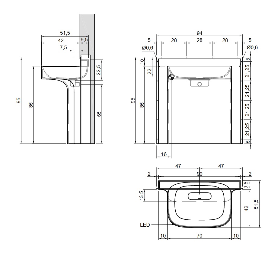 Antonio Lupi Fluido Umywalka ścienna 51,5x94 cm Biały FLUIDO