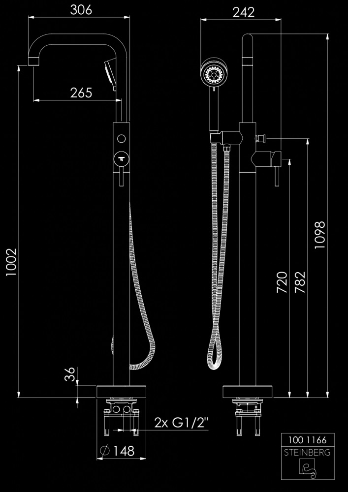 STEINBERG SERIA 100 Bateria wannowa wolnostojąca Chrom 100.1166 / 1001166