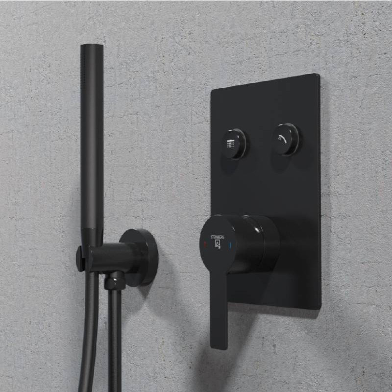 STEINBERG SERIA 100 Zestaw prysznicowy ze słuchawką i uchwytem z kolankiem Czarny mat 100.1670.S / 1001670S