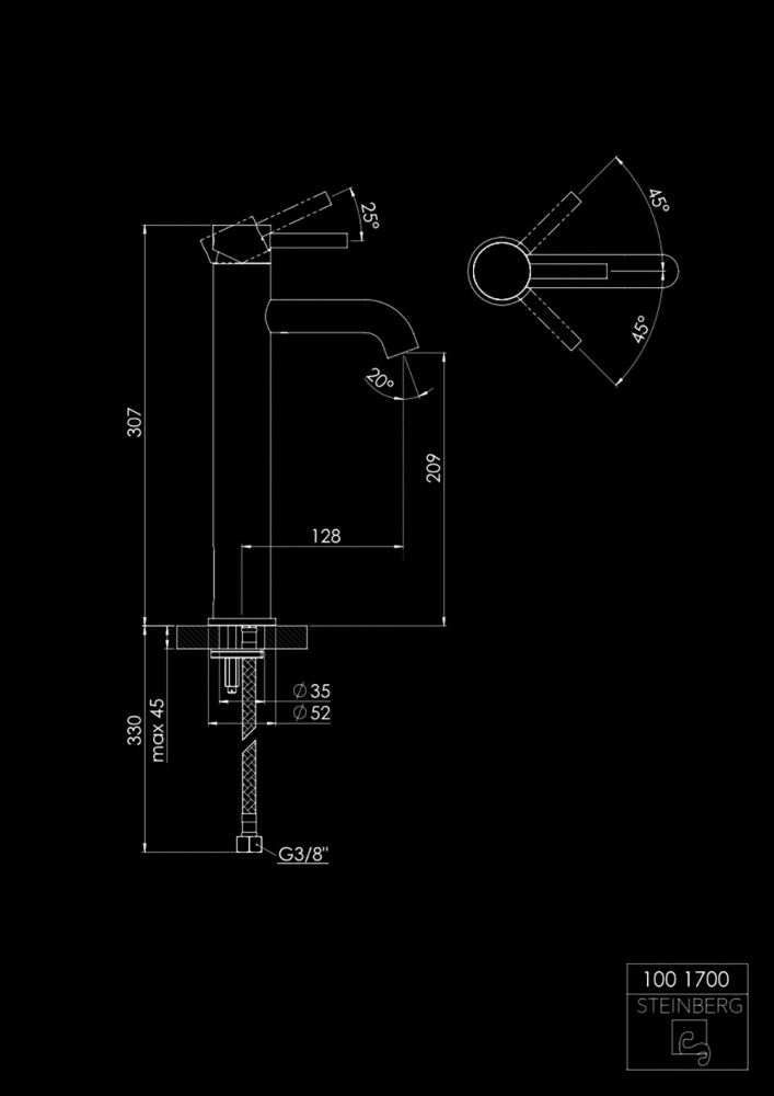 STEINBERG SERIA 100 Bateria umywalkowa jednouchwytowa bez korka Czarny mat 100.1700.S / 1001700S