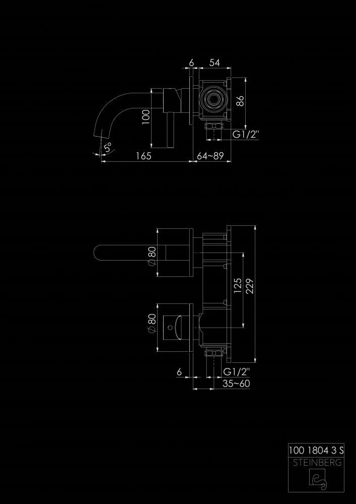 STEINBERG SERIA 100 Bateria umywalkowa jednouchwytowa podtynkowa element zewnętrzny Czarny mat 100.1804.3.S / 10018043S