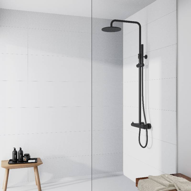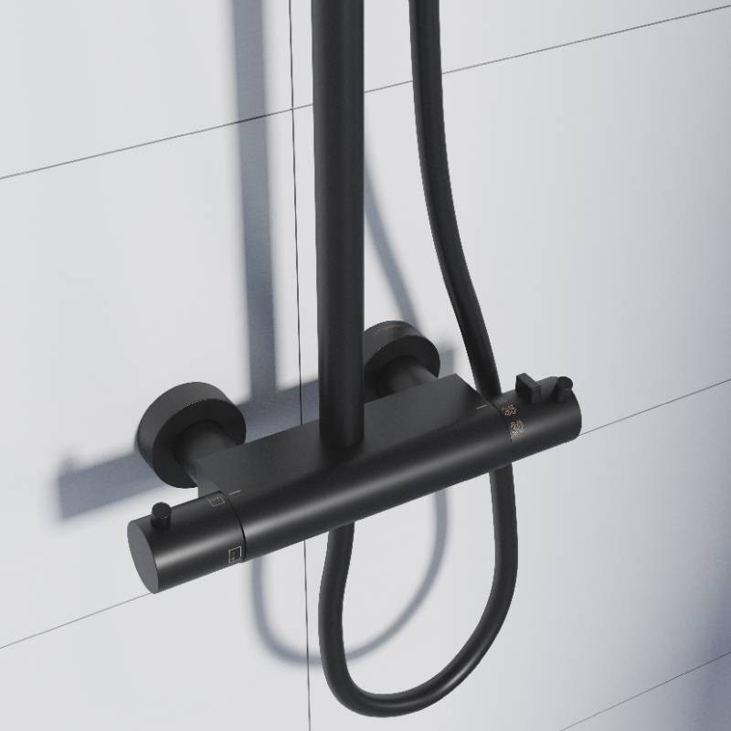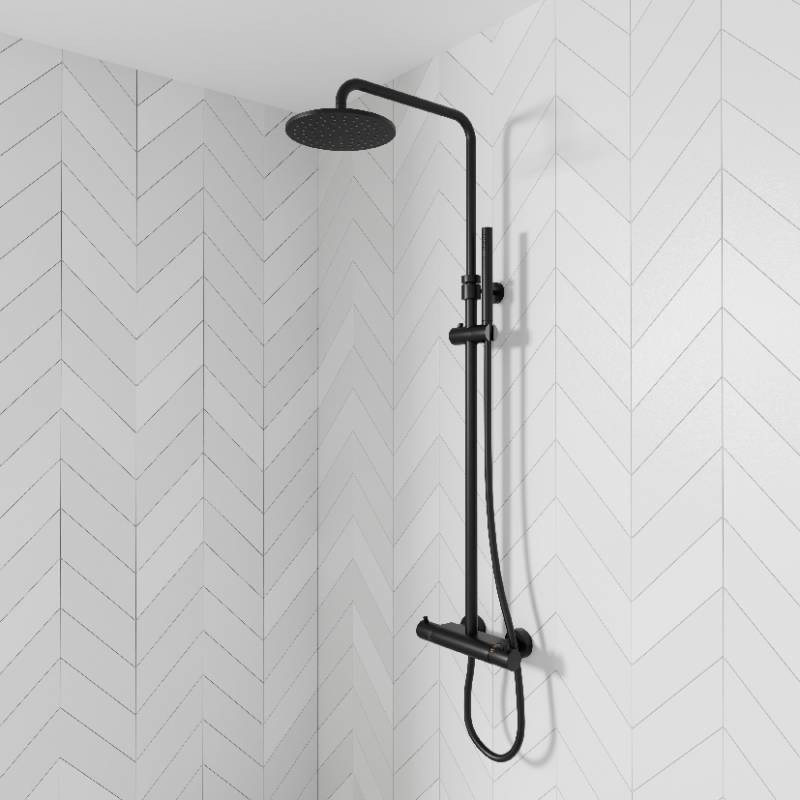 STEINBERG SERIA 100 Zestaw prysznicowy z baterią termostatyczną  i deszczownicą Ø 200 mm Czarny mat 100.2721.S / 1002721S