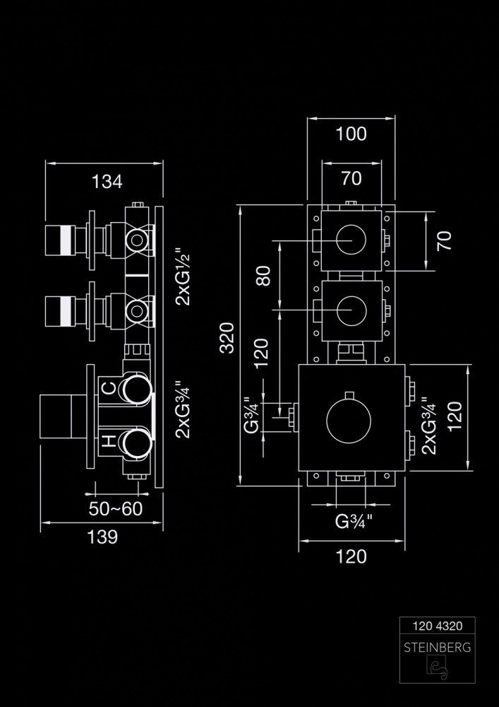STEINBERG SERIA 120 Bateria prysznicowa termostatyczna podtynkowa z 2 zaworami Chrom 120.4320 / 1204320