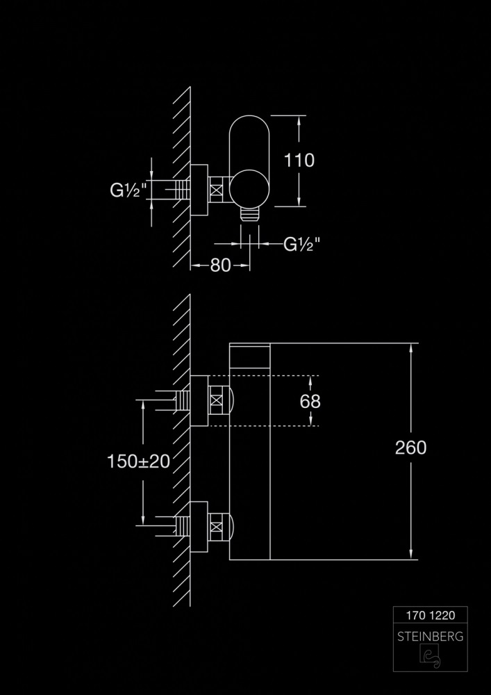STEINBERG SERIA 170 Bateria prysznicowa ścienna z mieszaczem Chrom 170.1220 / 1701220