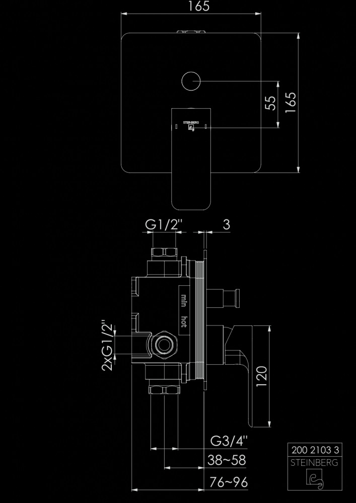 STEINBERG SERIA 200 Bateria wannowo-natryskowa podtynkowa element zewnętrzny Chrom 200.2103.3 / 20021033