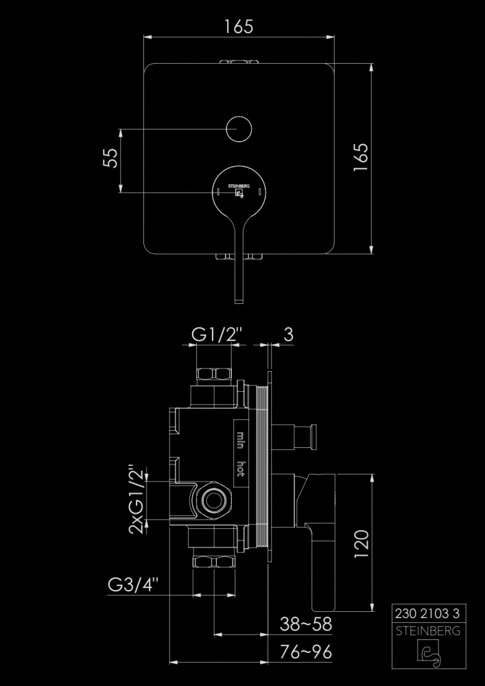 STEINBERG SERIA 230 Bateria wannowo-natryskowa podtynkowa element zewnętrzny Chrom 230.2103.3 / 23021033