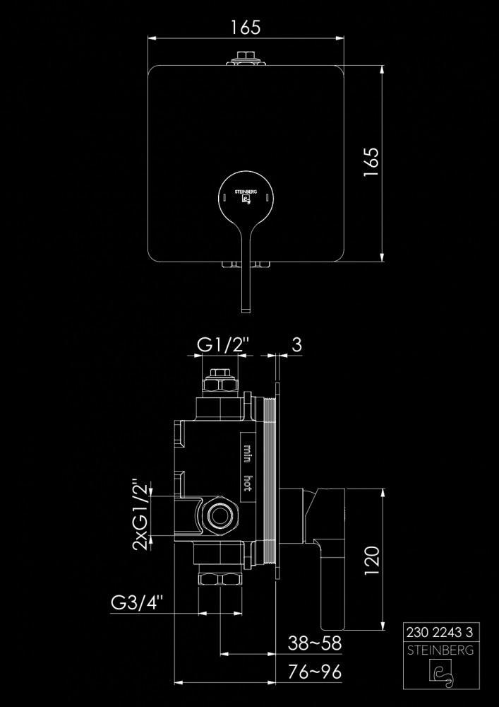 STEINBERG SERIA 230 Bateria wannowo-natryskowa podtynkowa element zewnętrzny Chrom 230.2243.3 / 23022433