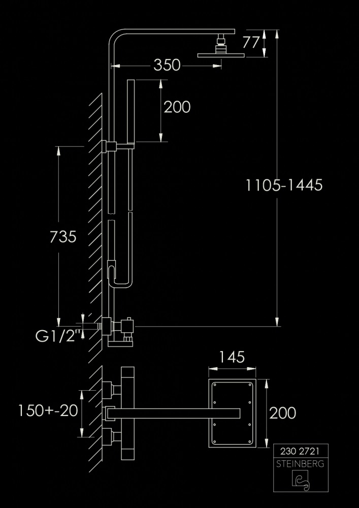 STEINBERG SERIA 230 Zestaw prysznicowy z baterią termostatyczną i deszczownicą 200x145 mm Chrom 230.2721 / 2302721