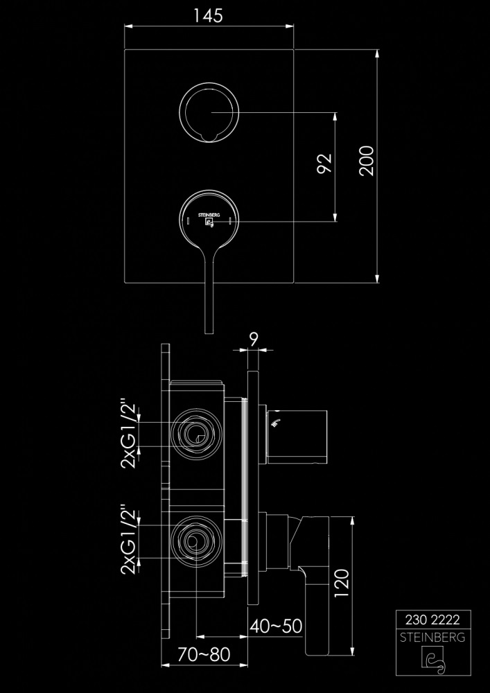 STEINBERG SERIA 230 Bateria wannowa podtynkowa element zewnętrzny Chrom 230.2222 / 2302222