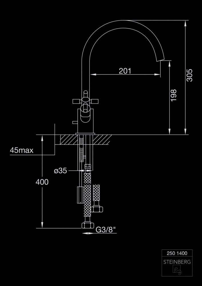 STEINBERG SERIA 250 Bateria kuchenna jednootworowa Chrom 250.1400 / 2501400