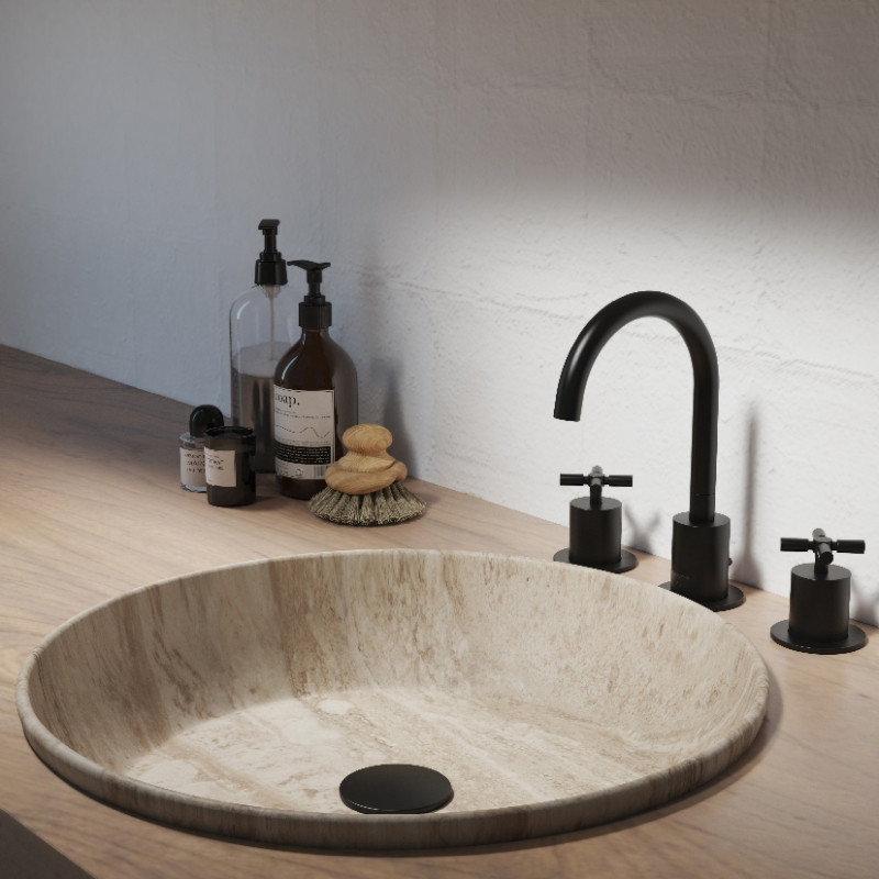 STEINBERG SERIA 250 Bateria umywalkowa 3-otworowa nablatowa Czarny mat 250.2000.S / 2502000S