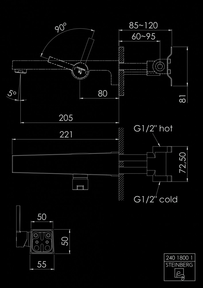 STEINBERG SERIA 240 Bateria umywalkowa jednouchwytowa podtynkowa Chrom 240.1800.1 / 24018001