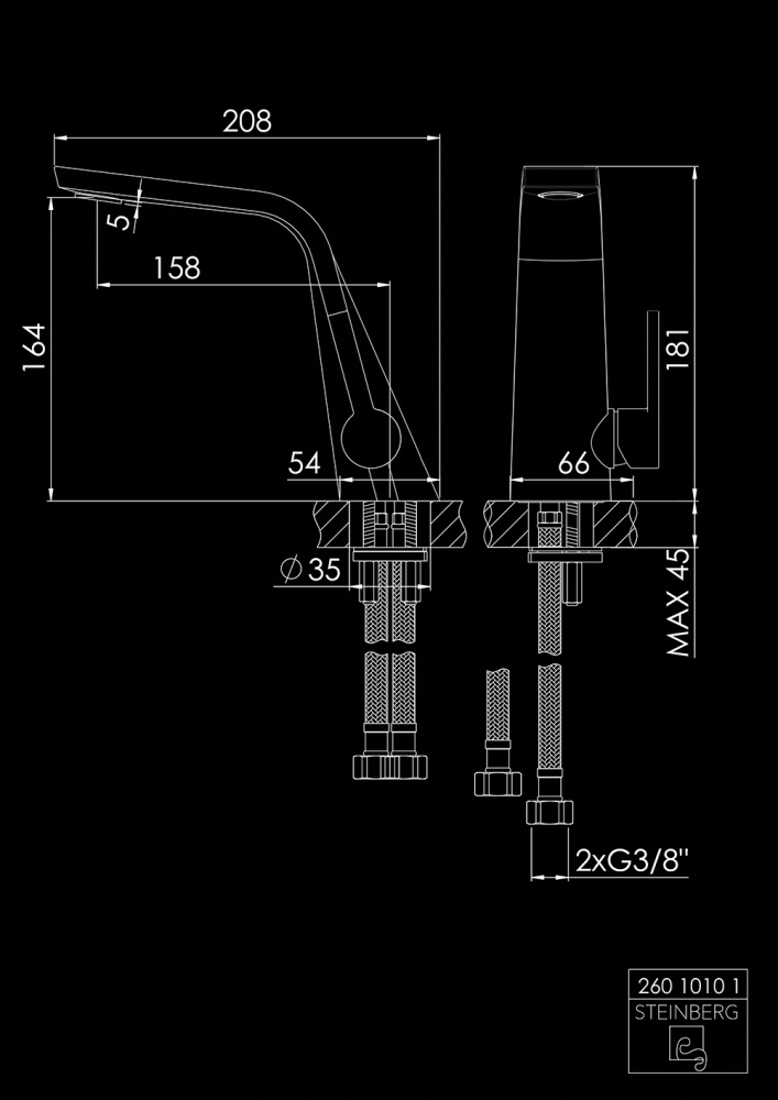 STEINBERG SERIA 260 Bateria umywalkowa jednootworowa bez korka Chrom 260.1010.1 / 26010101
