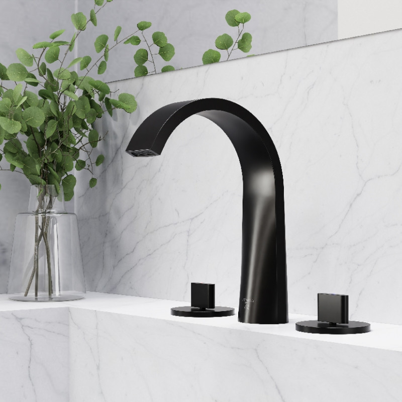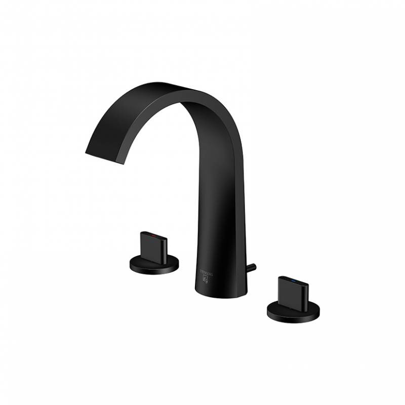 STEINBERG SERIA 280 bateria umywalkowa 3-otworowa nablatowa z korkiem Czarny mat 280.2000.S / 2802000S