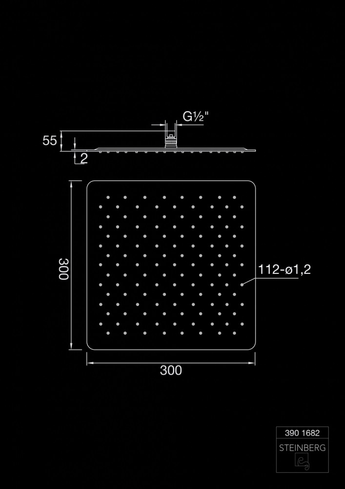 STEINBERG SERIA 390 Deszczownica ultrapłaska 300x300 mm Chrom 390.1682 / 3901682