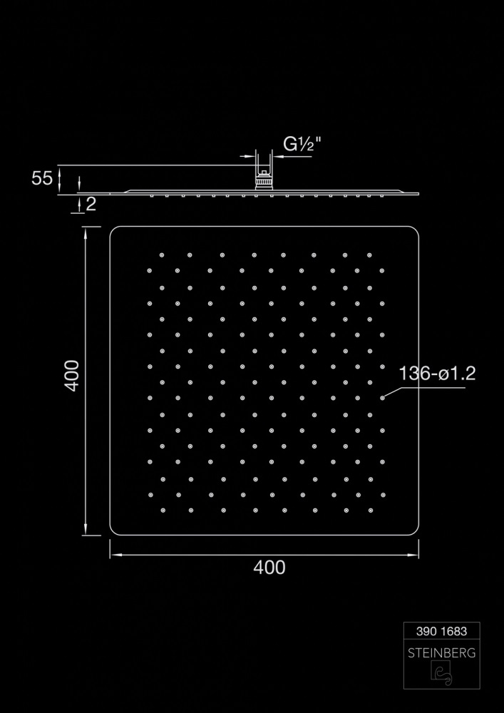 STEINBERG SERIA 390 Deszczownica ultrapłaska 400x400 mm Chrom 390.1683 / 3901683