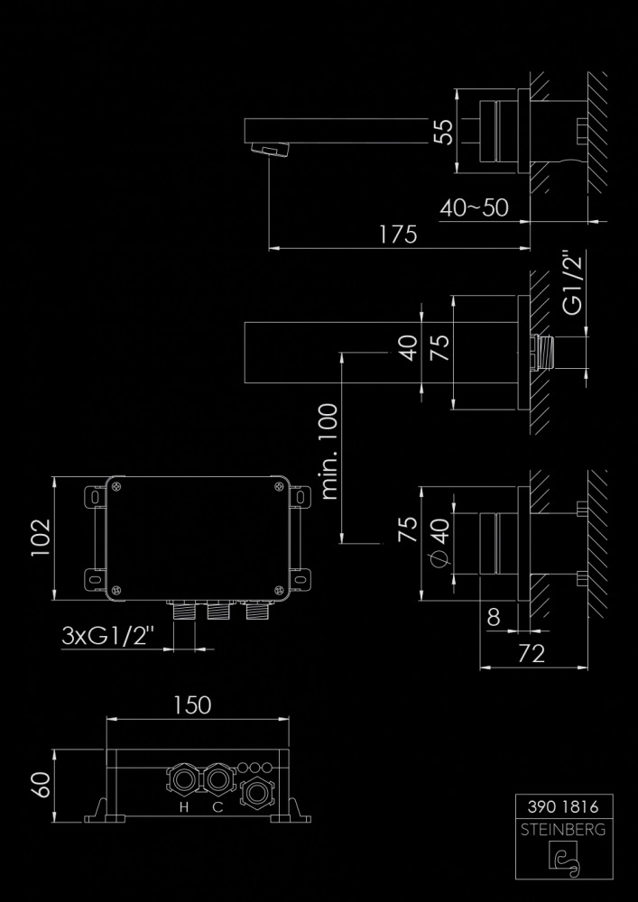 STEINBERG SERIA 390 iFlow Bateria umywalkowa podtynkowa w pełni elektroniczna Chrom 390.1816 / 3901816
