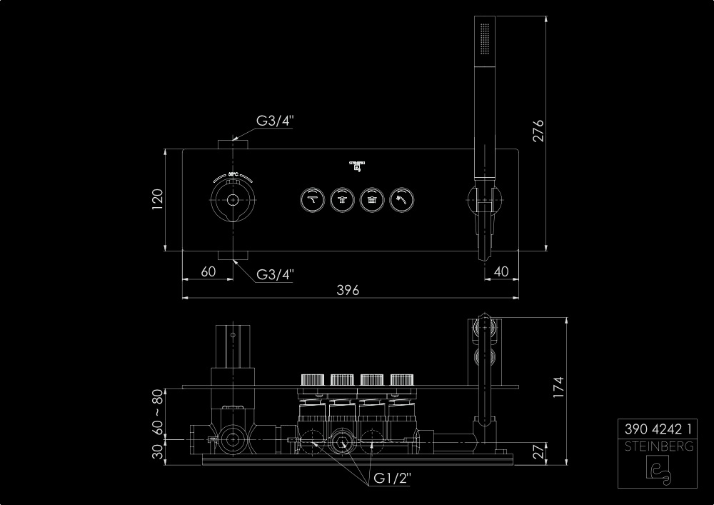 STEINBERG SERIA 390 Bateria wannowo-natryskowa termostatyczna podtynkowa Chrom 390.4242.1 / 39042421