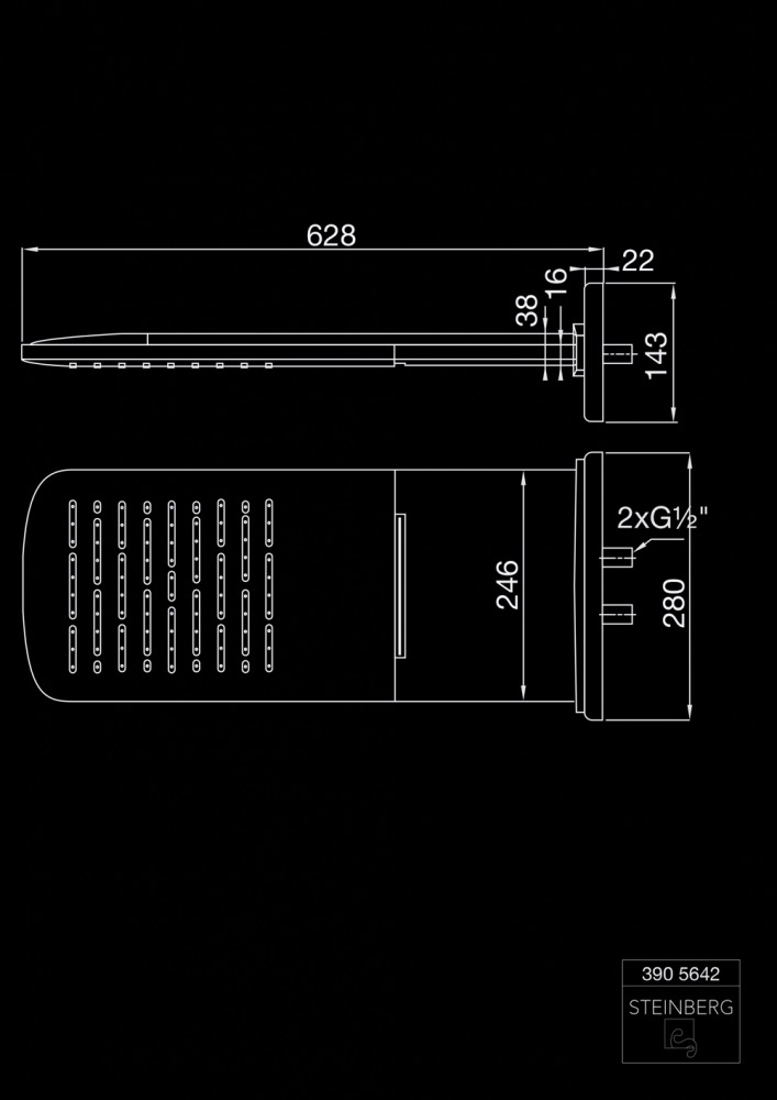 STEINBERG SERIA 390 Deszczownica Wall Rain 280x628 mm Stal Nierdzewna Polerowana 390.5642 / 3905642