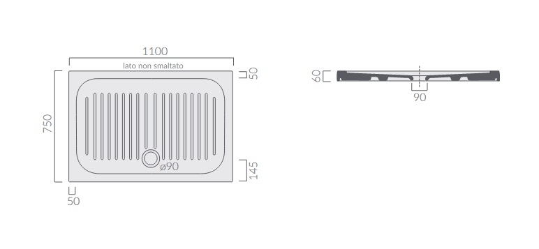 Galassia FLAT Brodzik prostokątny antypoślizgowy 110x75 cm Biały 1023
