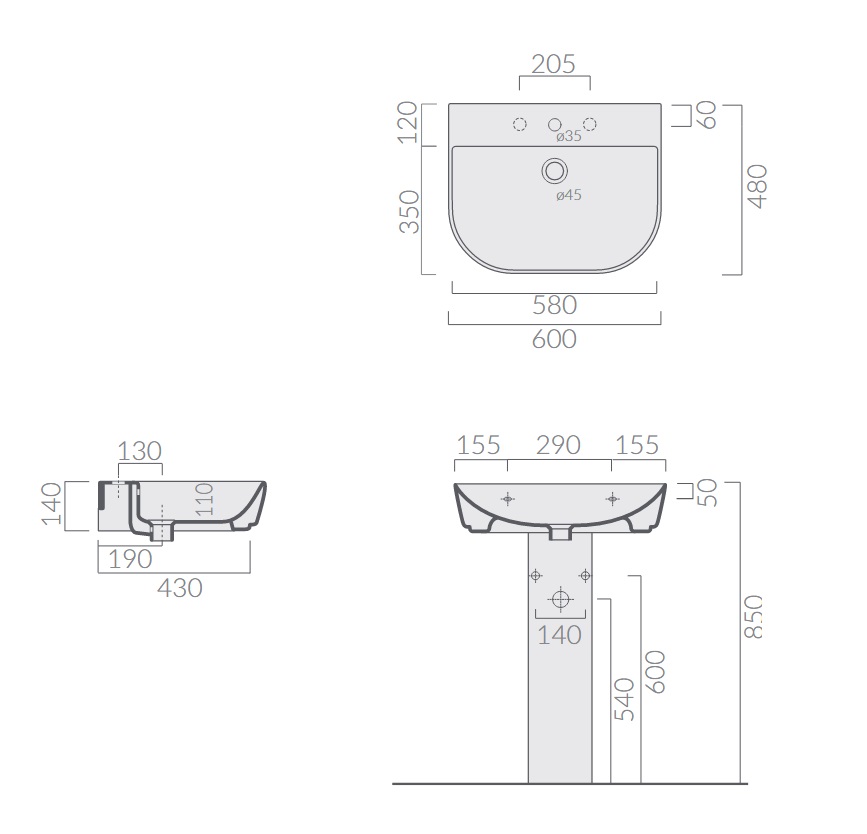 Galassia M2 Umywalka ścienna 60x48 cm Biały 5208