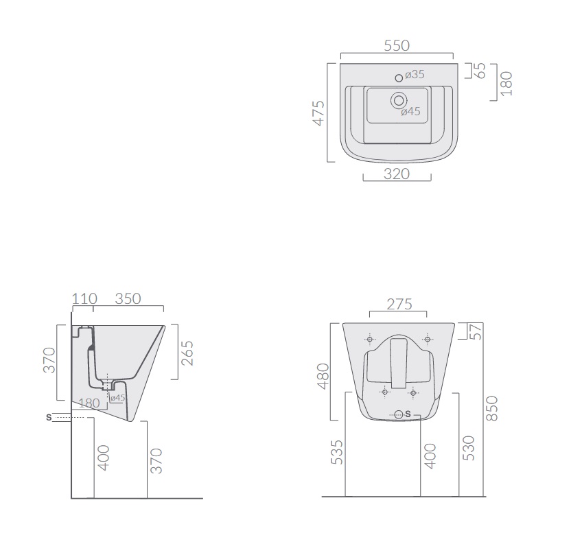 Galassia Meg 11 Umywalka ścienna 55x45 cm Biały 5482
