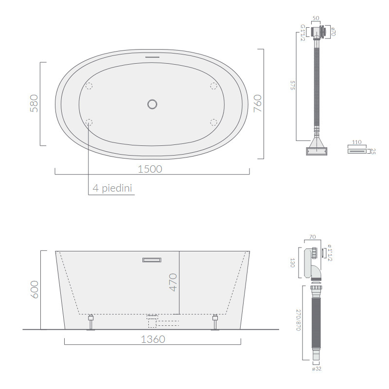 Cena dotyczy wanny z systemem przelewowo-odpływowym.