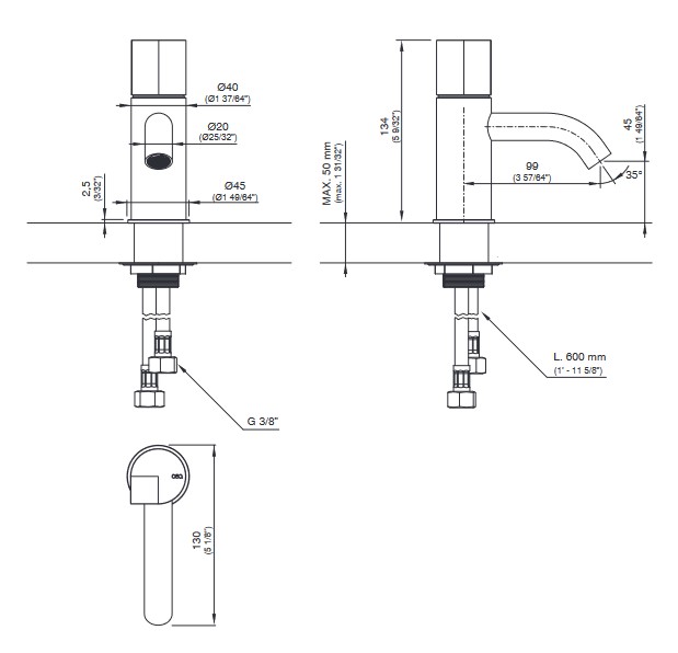CEA Duet Bateria umywalkowa jednootworowa Satin Stainless Steel DET02S