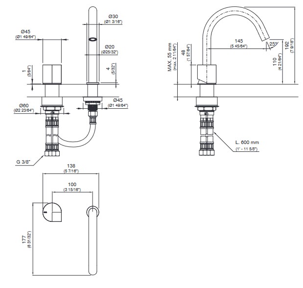 CEA Duet Bateria umywalkowa 2-otworowa z obrotową wylewką Satin Stainless Steel DET10S