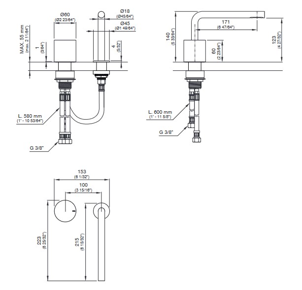 CEA Opus Bateria umywalkowa 2-otworowa z obrotową wylewką Satin Stainless Steel OPS01S