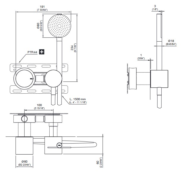 CEA Opus Bateria wannowa/prysznicowa ścienna ze słuchawką i wężem element zewnętrzny Satin Stainless Steel OPS61HWS