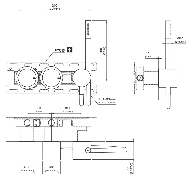 CEA Opus Bateria wannowa/prysznicowa ścienna ze słuchawką i wężem element zewnętrzny Satin Stainless Steel OPS24WS