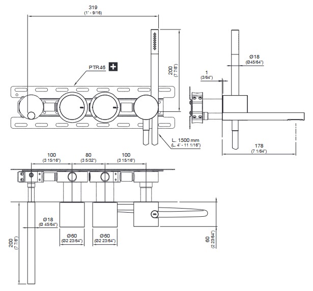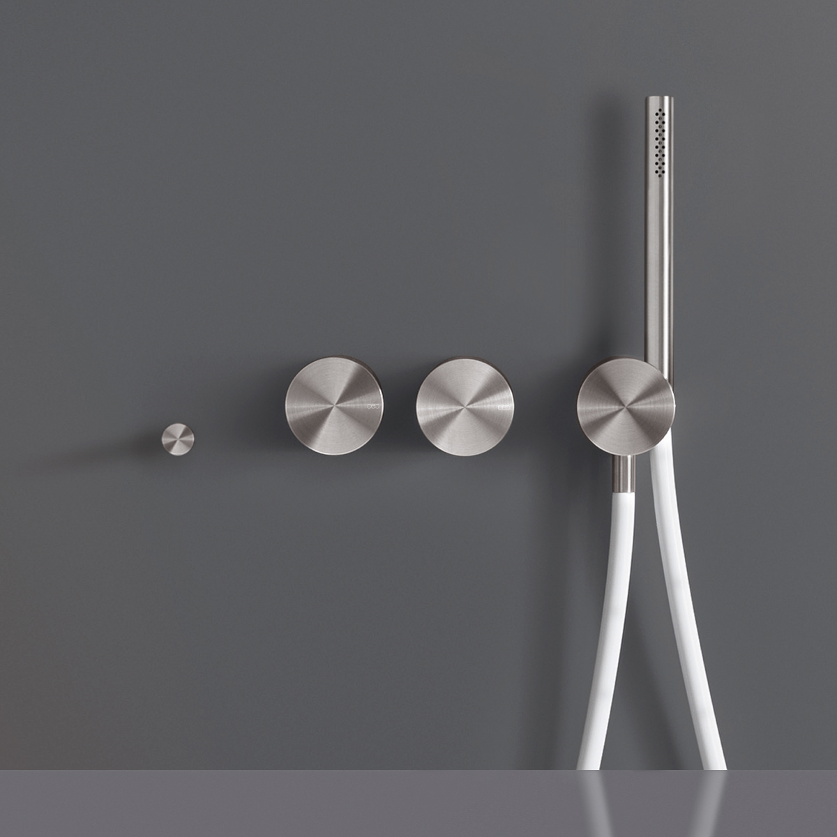 CEA Opus Bateria wannowa ścienna z wylewką, słuchawką i wężem element zewnętrzny Satin Stainless Steel OPS25WS