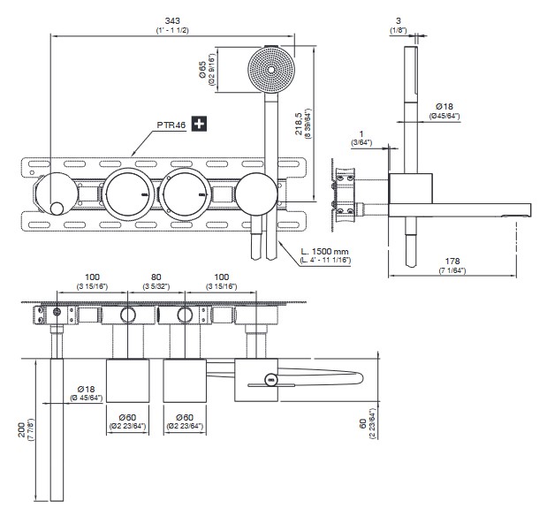 Rozstaw przyłączy: 10, 8 i 10 cm