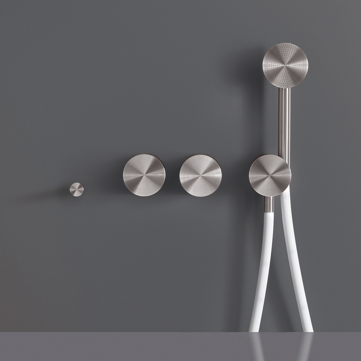CEA Opus Bateria wannowa ścienna z wylewką, słuchawką i wężem element zewnętrzny Satin Stainless Steel OPS25YWS