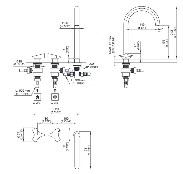 Wysięg wylewki: 14,6 cm