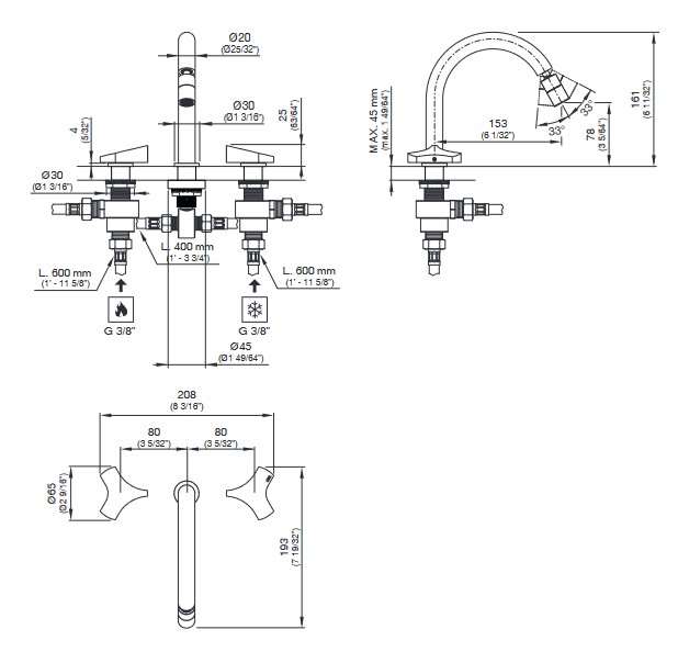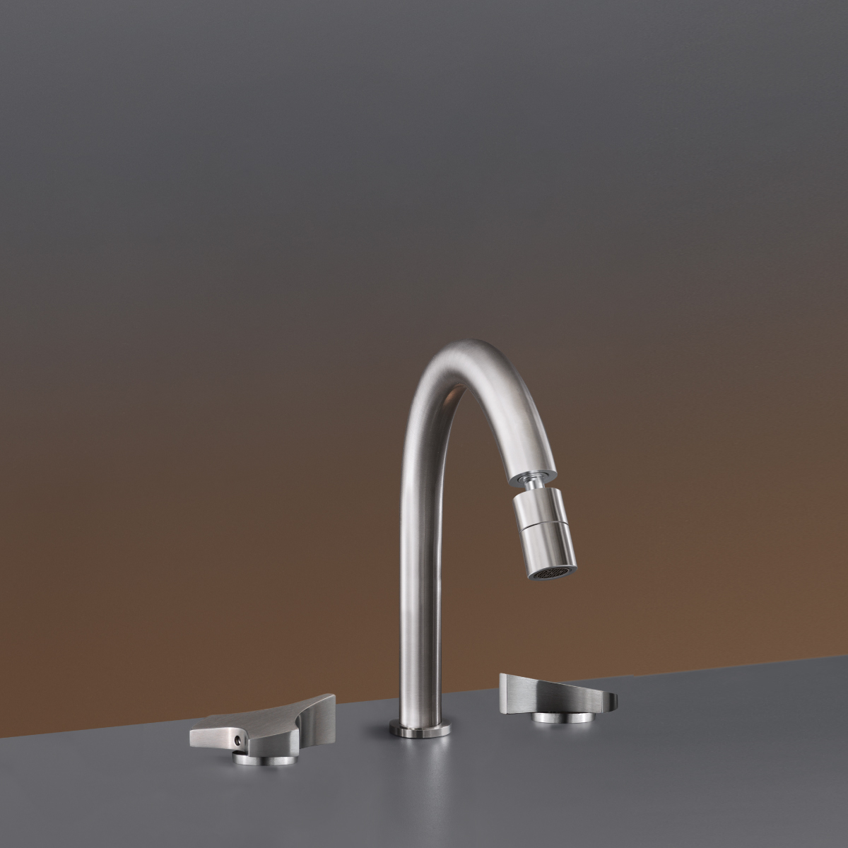 CEA Ziqq Bateria bidetowa 3-otworowa z regulowaną wylewką Satin Stainless Steel ZIQ73S