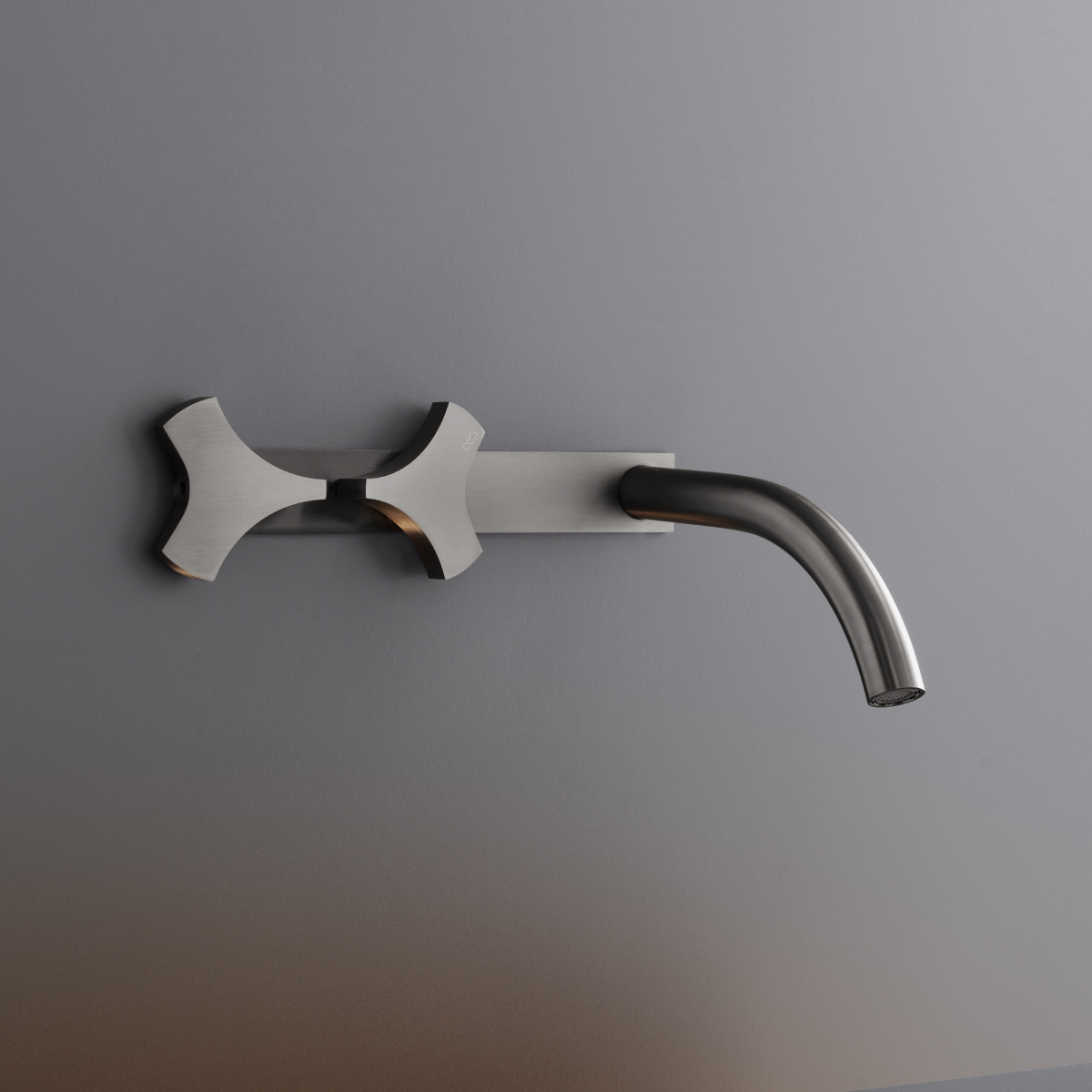 CEA Ziqq Bateria umywalkowa ścienna z wylewką 17 cm element zewnętrzny Satin Stainless Steel ZIQ02S