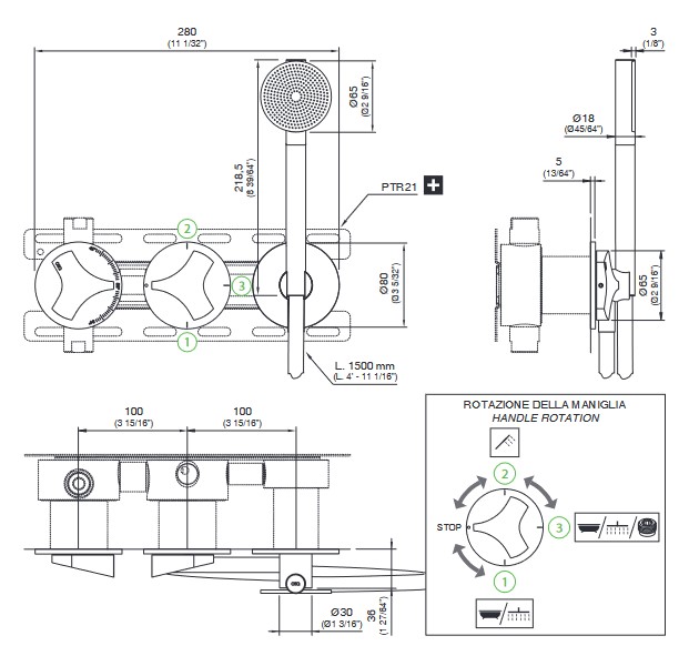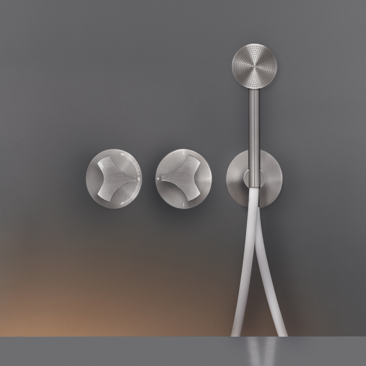 CEA Ziqq Bateria wannowa/prysznicowa ścienna termostatyczna z przełącznikiem 2/3-drożnym, słuchawką i wężem element zewnętrzny Satin Stainless Steel ZIQ71YWS