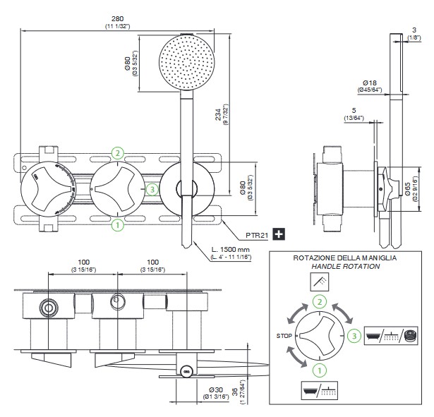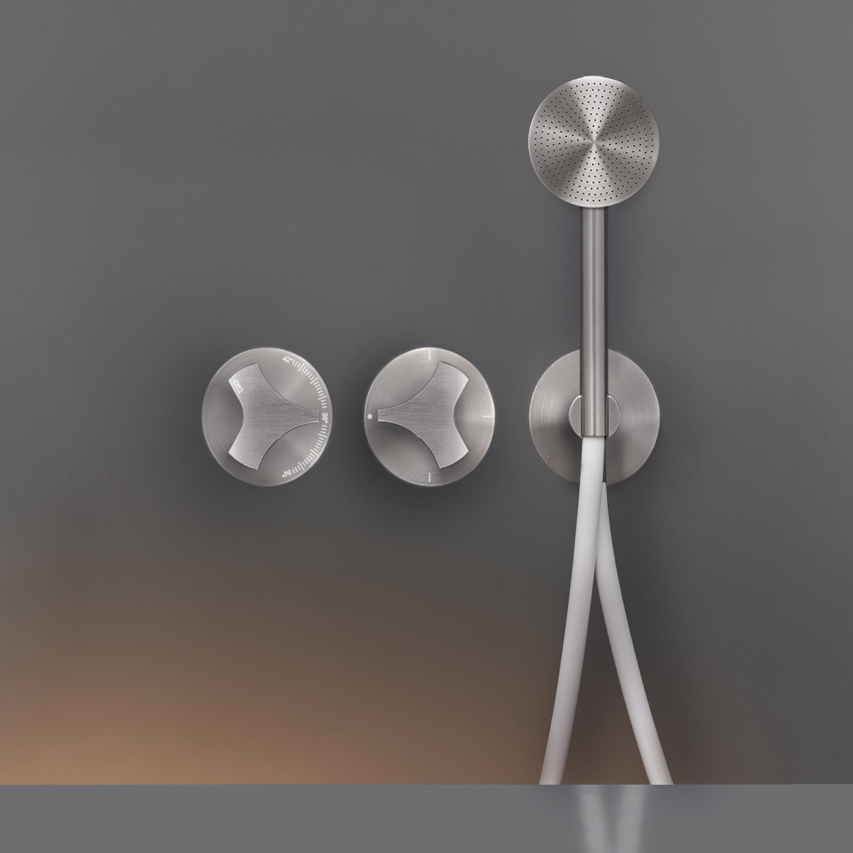 CEA Ziqq Bateria wannowa/prysznicowa ścienna termostatyczna z przełącznikiem 2/3-drożnym, słuchawką i wężem element zewnętrzny Satin Stainless Steel ZIQ71HWS