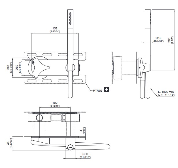 CEA Ziqq Bateria wannowa/prysznicowa ścienna z słuchawką i wężem element zewnętrzny Satin Stainless Steel ZIQ42WS