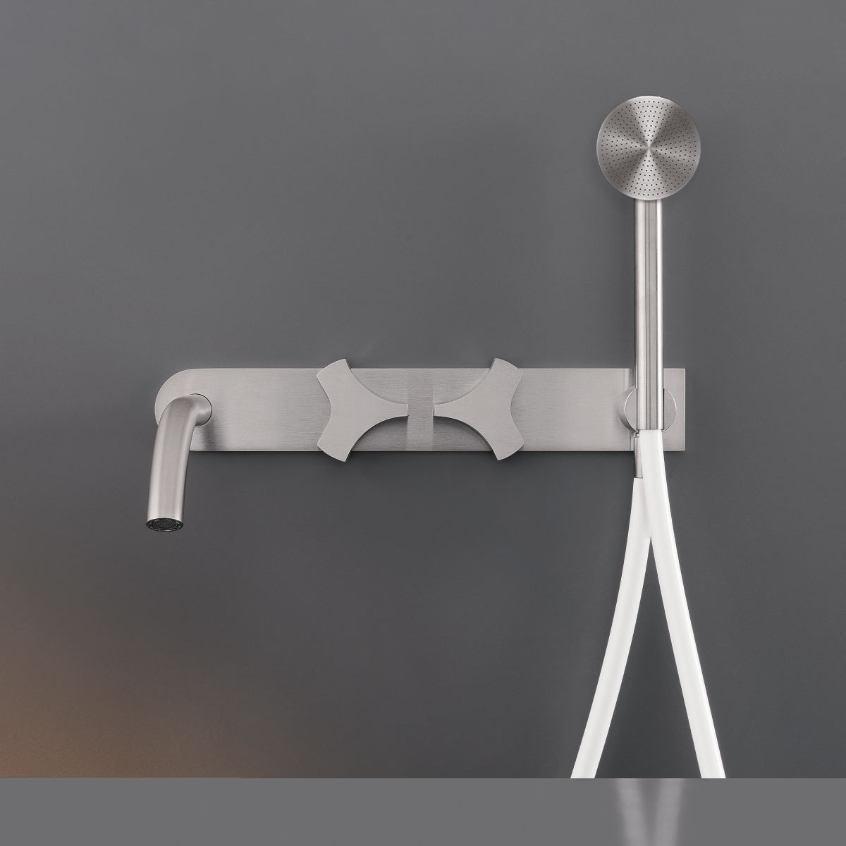 CEA Ziqq Bateria wannowa ścienna z wylewką, słuchawką i wężem element zewnętrzny Satin Stainless Steel ZIQ44YWS