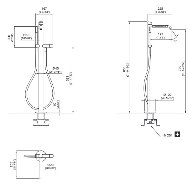 CEA Ziqq Bateria wannowa wolnostojąca ze słuchawką i wężem element zewnętrzny Satin Stainless Steel ZIQ51BKS