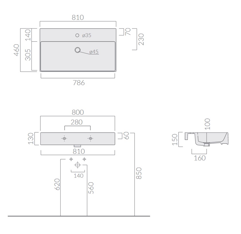 Galassia MEG11 PRO Umywalka ścienna/stawiana na blat 81x46 cm Biały 8973
