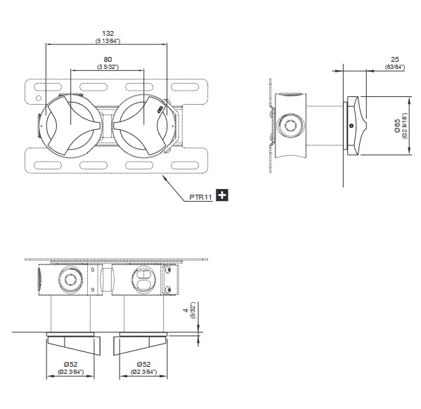CEA Ziqq Zawór odcinający (para) ścienny mieszający element zewnętrzny Satin Stainless Steel ZIQ25S