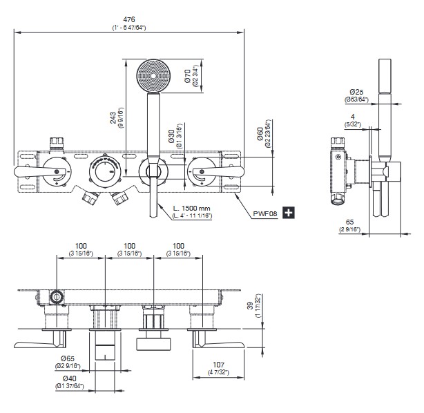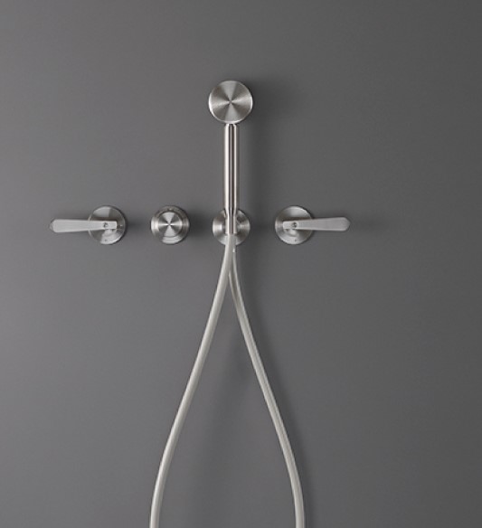 CEA Lutezia Bateria wannowa/prysznicowa ścienna termostatyczna z 2 zaworami odcinającymi, słuchawką i wężem element zewnętrzny Satin Stainless Steel LTZ31SGS