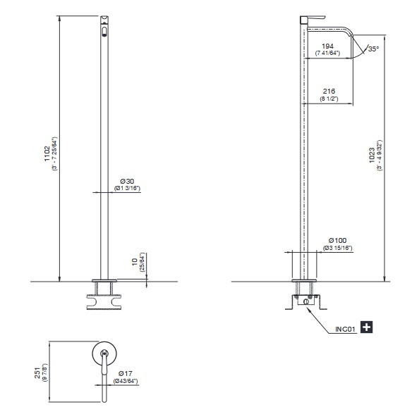 CEA Lutezia Plus Bateria umywalkowa wolnostojąca element zewnętrzny Satin Stainless Steel LTZ20S