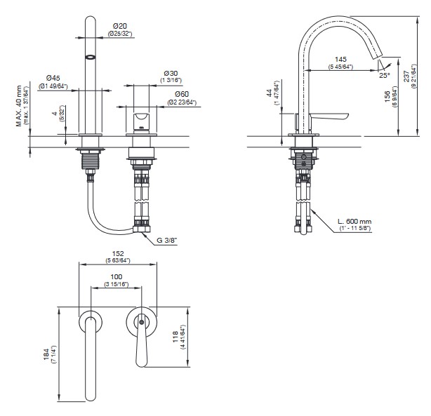 CEA Lutezia Plus Bateria umywalkowa 2-otworowa z obrotową wylewką H23,5 cm Satin Stainless Steel LTZ27S