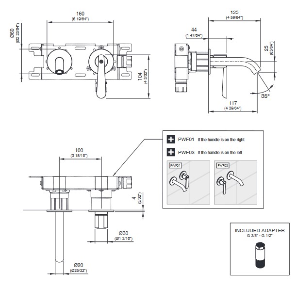 Element podtynkowy PWF03, wylewka z lewej