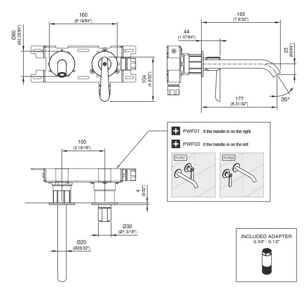 CEA Lutezia Plus Bateria umywalkowa ścienna z wylewką 18,5 cm element zewnętrzny Satin Stainless Steel LTZ22S
